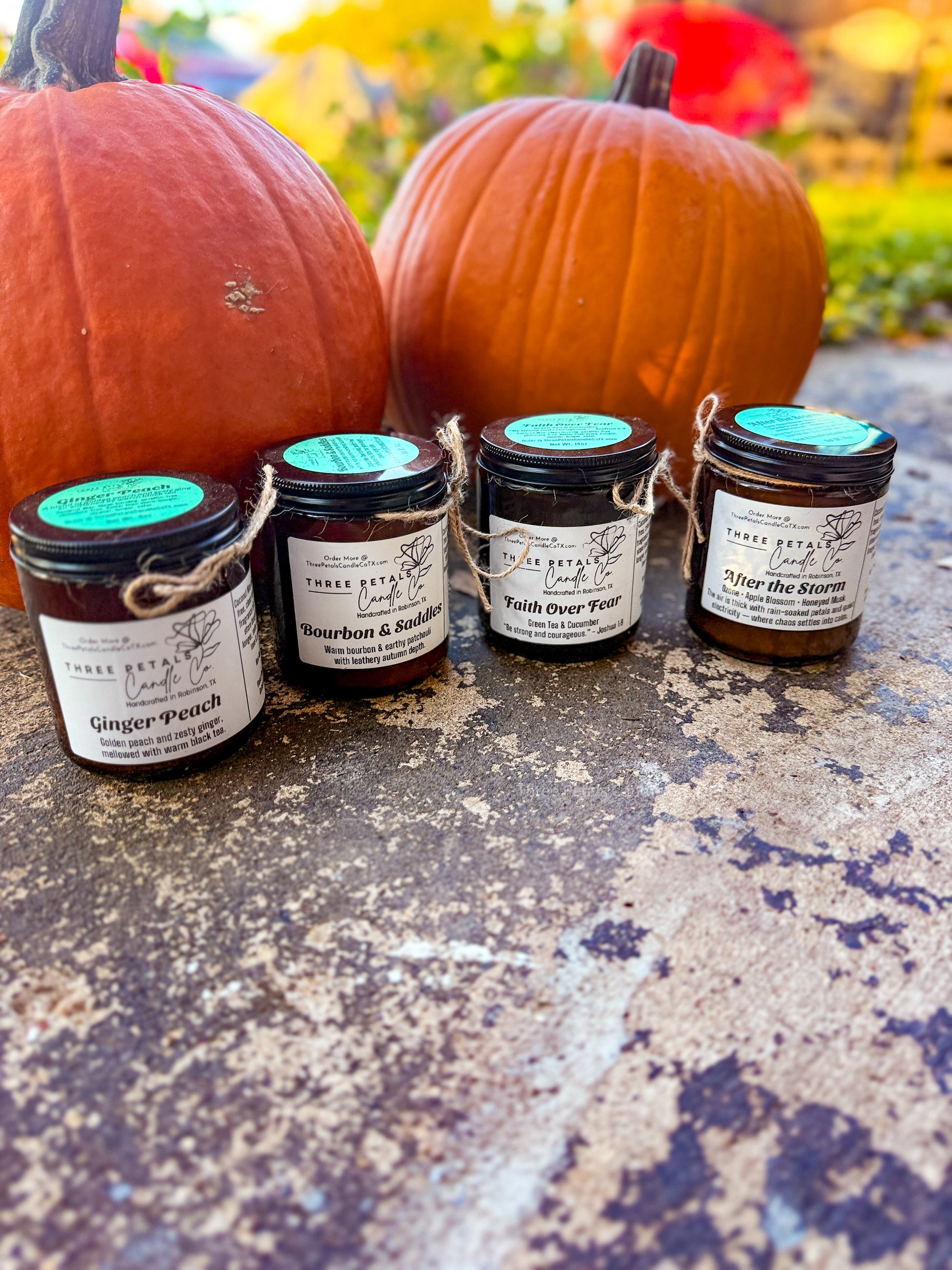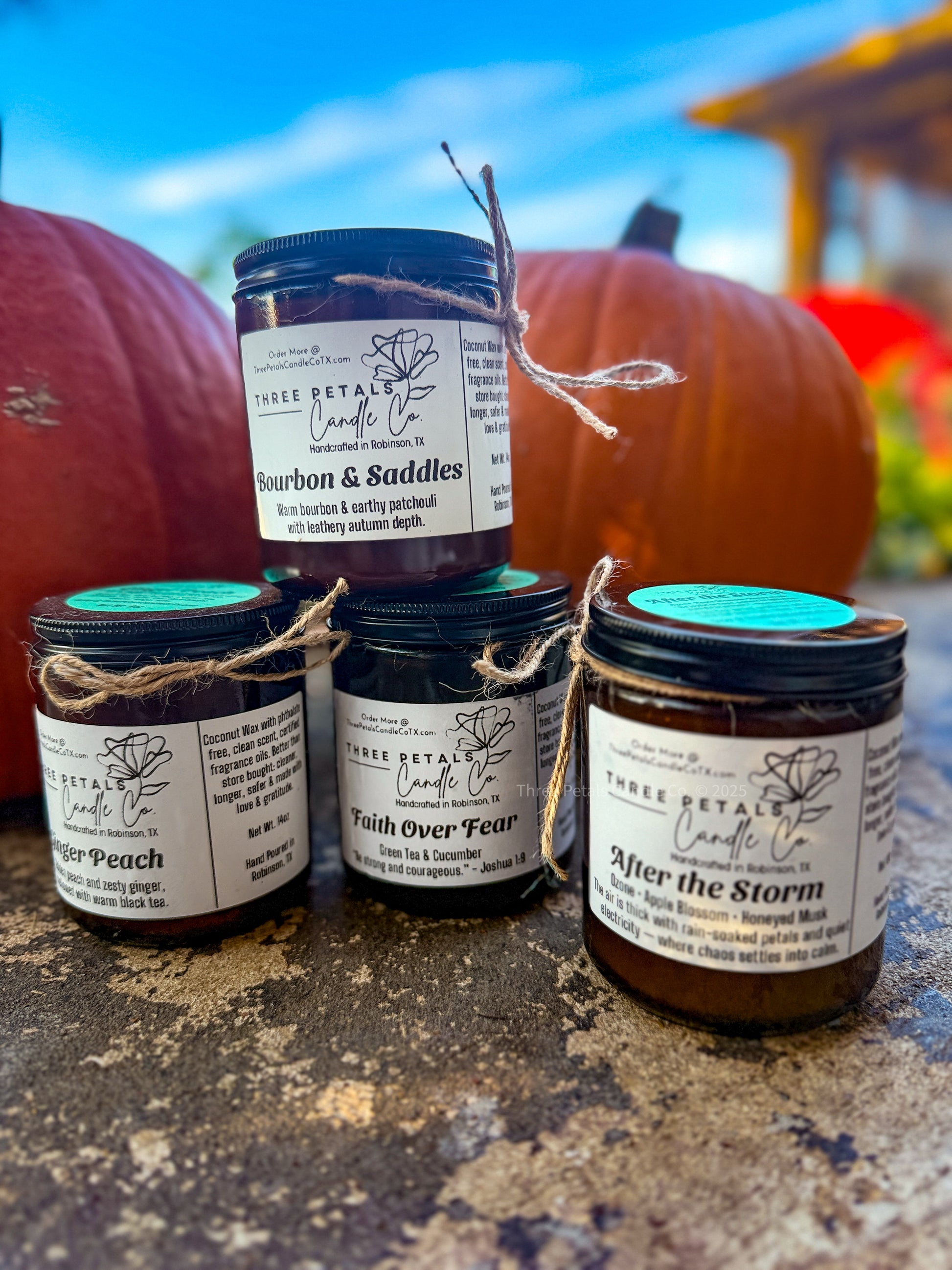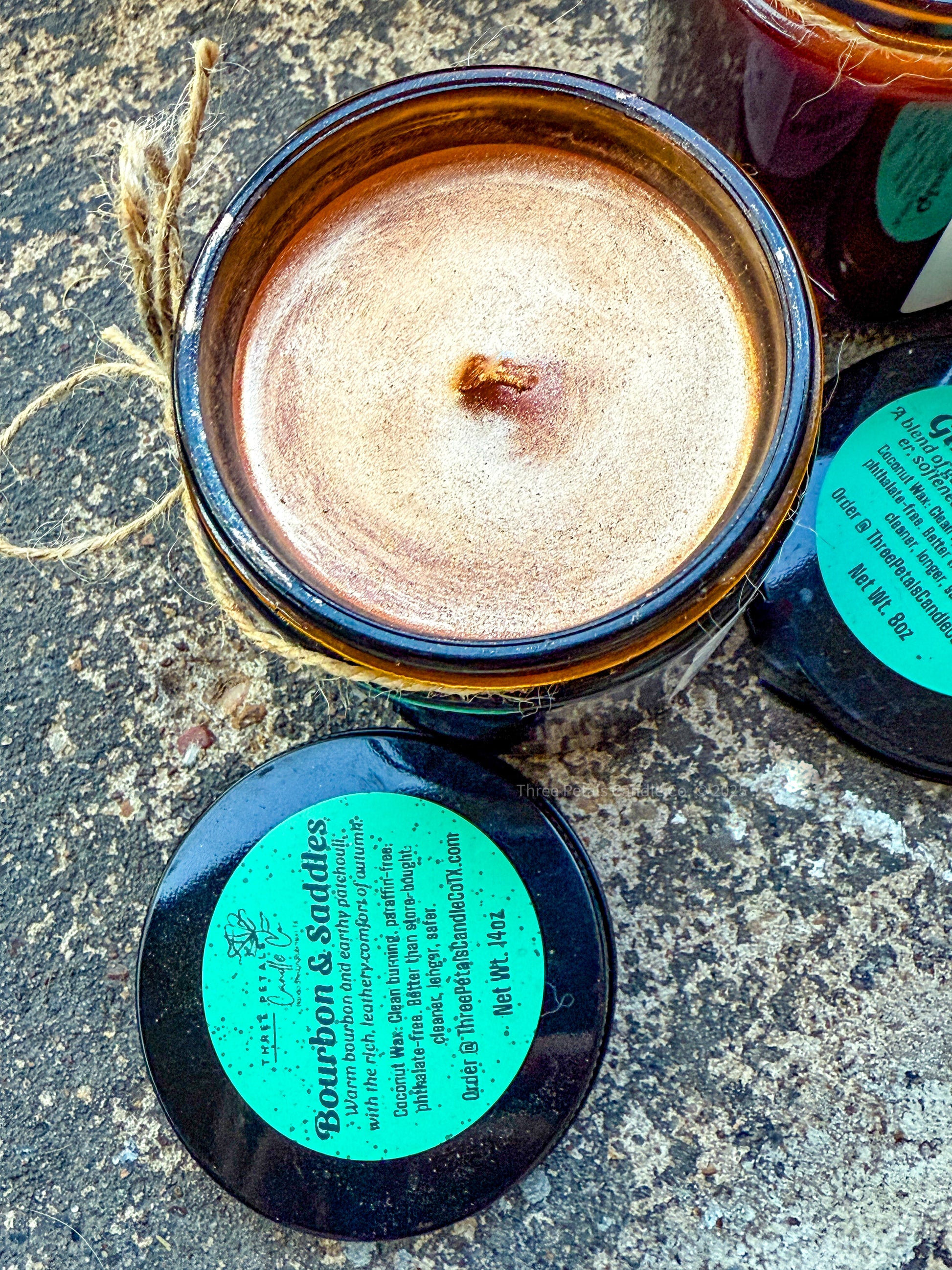 Elevate your space with the Amber Glass Collection from Three Petals Candle Co. Each 8oz candle is hand-poured in Robinson, TX using coconut soy wax for a cleaner, longer burn. Finished with a soft shimmer and housed in classic amber glass jars, these candles are designed to fill your home with both beauty and fragrance.