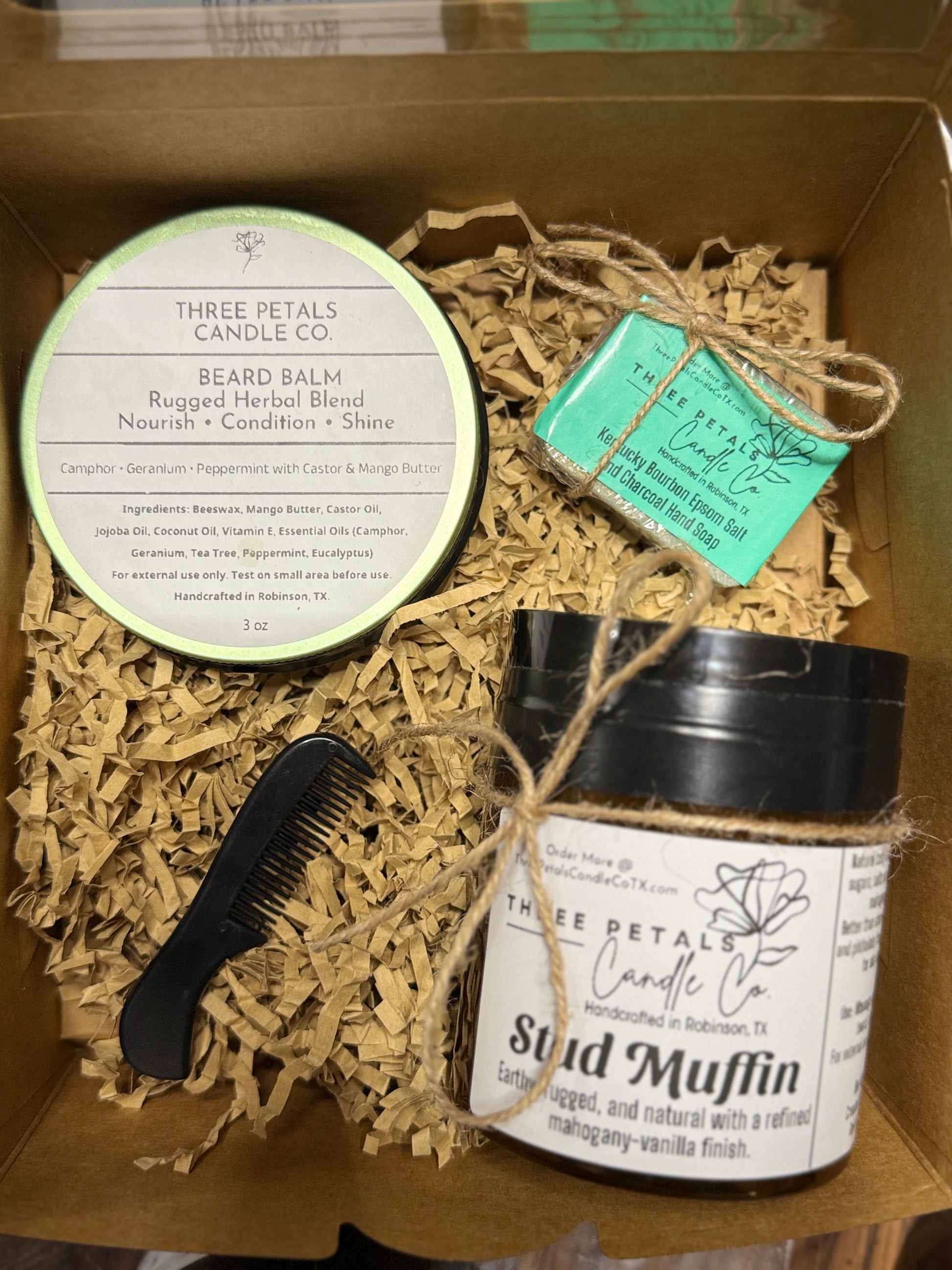 Meet Stud Muffin — the scrub that proves self-care can still smell like confidence, bourbon, and fresh-cut mahogany. This handcrafted brown sugar + Epsom salt blend is designed for men who like their routine simple but effective.